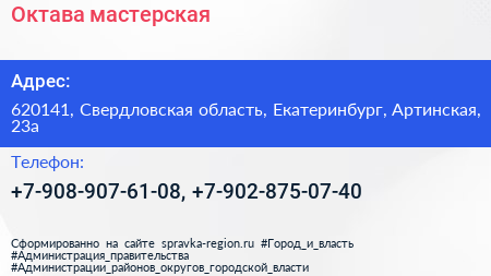 Октава, мастерская по адресу 620141, Свердловская область, Екатеринбург, Артинская, 23а в дальнейшем Организация, размещена в следующих категориях: