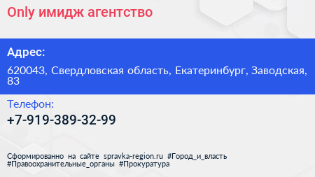 Only, имидж-агентство по адресу 620043, Свердловская область, Екатеринбург, Заводская, 83 в дальнейшем Организация, размещена в следующих категориях: