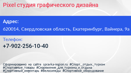 Pixel, студия графического дизайна по адресу 620014, Свердловская область, Екатеринбург, Вайнера, 9а в дальнейшем Организация, размещена в следующих категориях: