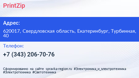 PrintZip по адресу 620017, Свердловская область, Екатеринбург, Турбинная, 40 в дальнейшем Организация, размещена в следующих категориях: