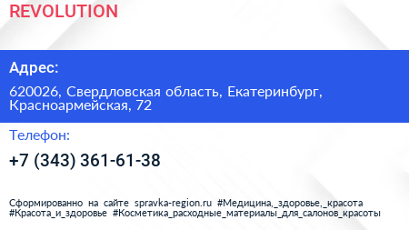 REVOLUTION по адресу 620026, Свердловская область, Екатеринбург, Красноармейская, 72 в дальнейшем Организация, размещена в следующих категориях: