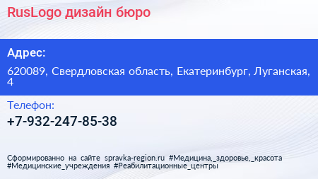 RusLogo, дизайн-бюро по адресу 620089, Свердловская область, Екатеринбург, Луганская, 4 в дальнейшем Организация, размещена в следующих категориях: