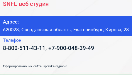 SNFL, веб-студия по адресу 620028, Свердловская область, Екатеринбург, Кирова, 28 в дальнейшем Организация, размещена в следующих категориях: