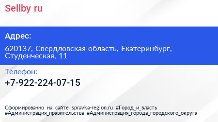 Sellby.ru по адресу 620137, Свердловская область, Екатеринбург, Студенческая, 11 в дальнейшем Организация, размещена в следующих категориях:
