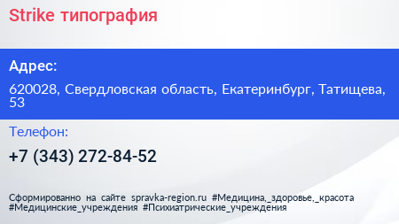 Strike, типография по адресу 620028, Свердловская область, Екатеринбург, Татищева, 53 в дальнейшем Организация, размещена в следующих категориях: