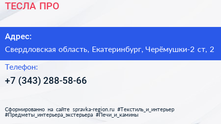 ТЕСЛА ПРО по адресу Свердловская область, Екатеринбург, Черёмушки-2 ст, 2 в дальнейшем Организация, размещена в следующих категориях: