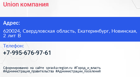 Union, компания по адресу 620024, Свердловская область, Екатеринбург, Новинская, 2 лит В в дальнейшем Организация, размещена в следующих категориях: