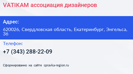 VATIKAM, ассоциация дизайнеров по адресу 620026, Свердловская область, Екатеринбург, Энгельса, 36 в дальнейшем Организация, размещена в следующих категориях: