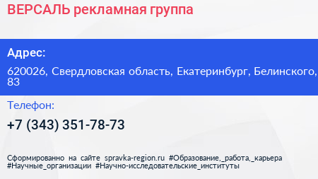 ВЕРСАЛЬ, рекламная группа по адресу 620026, Свердловская область, Екатеринбург, Белинского, 83 в дальнейшем Организация, размещена в следующих категориях: