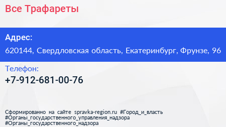Все Трафареты по адресу 620144, Свердловская область, Екатеринбург, Фрунзе, 96 в дальнейшем Организация, размещена в следующих категориях: