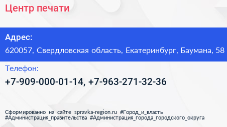 Центр печати по адресу 620057, Свердловская область, Екатеринбург, Баумана, 58 в дальнейшем Организация, размещена в следующих категориях: