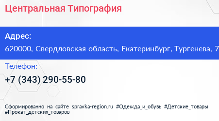 Центральная Типография по адресу 620000, Свердловская область, Екатеринбург, Тургенева, 7 в дальнейшем Организация, размещена в следующих категориях:
