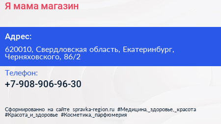 Я-мама!, магазин по адресу 620010, Свердловская область, Екатеринбург, Черняховского, 86/2 в дальнейшем Организация, размещена в следующих категориях: