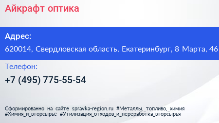 Айкрафт, оптика по адресу 620014, Свердловская область, Екатеринбург, 8 Марта, 46 в дальнейшем Организация, размещена в следующих категориях:
