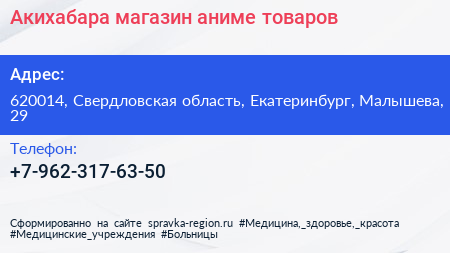Акихабара, магазин аниме-товаров по адресу 620014, Свердловская область, Екатеринбург, Малышева, 29 в дальнейшем Организация, размещена в следующих категориях: