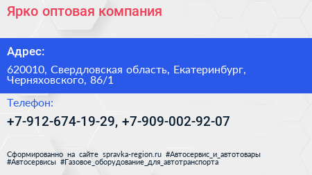 Ярко, оптовая компания по адресу 620010, Свердловская область, Екатеринбург, Черняховского, 86/1 в дальнейшем Организация, размещена в следующих категориях: