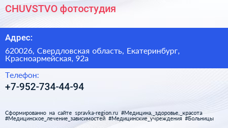 CHUVSTVO, фотостудия по адресу 620026, Свердловская область, Екатеринбург, Красноармейская, 92а в дальнейшем Организация, размещена в следующих категориях: