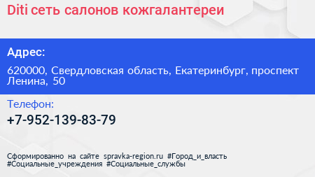 Diti, сеть салонов кожгалантереи по адресу 620000, Свердловская область, Екатеринбург, проспект Ленина, 50 в дальнейшем Организация, размещена в следующих категориях: