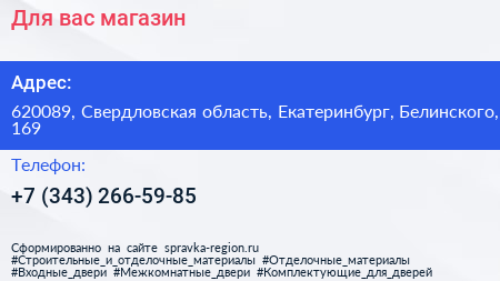 Для вас, магазин по адресу 620089, Свердловская область, Екатеринбург, Белинского, 169 в дальнейшем Организация, размещена в следующих категориях: