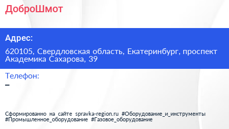 ДоброШмот по адресу 620105, Свердловская область, Екатеринбург, проспект Академика Сахарова, 39 в дальнейшем Организация, размещена в следующих категориях: