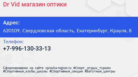 Dr.Vid, магазин оптики по адресу 620109, Свердловская область, Екатеринбург, Крауля, 8 в дальнейшем Организация, размещена в следующих категориях: