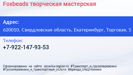 Foxbeads, творческая мастерская по адресу 620010, Свердловская область, Екатеринбург, Торговая, 5 в дальнейшем Организация, размещена в следующих категориях: