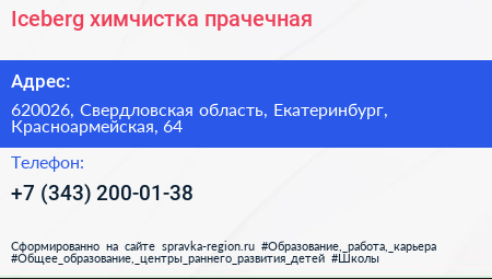 Iceberg, химчистка-прачечная по адресу 620026, Свердловская область, Екатеринбург, Красноармейская, 64 в дальнейшем Организация, размещена в следующих категориях: