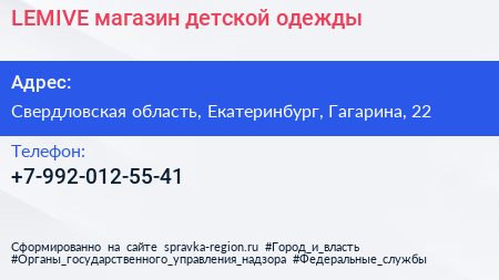 LEMIVE, магазин детской одежды по адресу Свердловская область, Екатеринбург, Гагарина, 22 в дальнейшем Организация, размещена в следующих категориях: