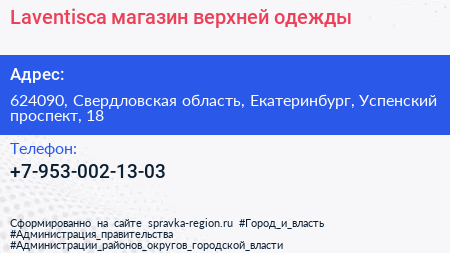 Laventisca, магазин верхней одежды по адресу 624090, Свердловская область, Екатеринбург, Успенский проспект, 18 в дальнейшем Организация, размещена в следующих категориях: