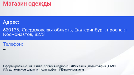Магазин одежды по адресу 620135, Свердловская область, Екатеринбург, проспект Космонавтов, 82/3 в дальнейшем Организация, размещена в следующих категориях:
