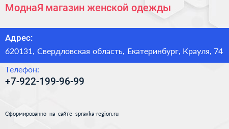 МоднаЯ, магазин женской одежды по адресу 620131, Свердловская область, Екатеринбург, Крауля, 74 в дальнейшем Организация, размещена в следующих категориях: