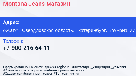 Montana Jeans, магазин по адресу 620091, Свердловская область, Екатеринбург, Баумана, 27 в дальнейшем Организация, размещена в следующих категориях: