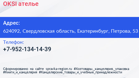 OKSI, ателье по адресу 624092, Свердловская область, Екатеринбург, Петрова, 53 в дальнейшем Организация, размещена в следующих категориях: