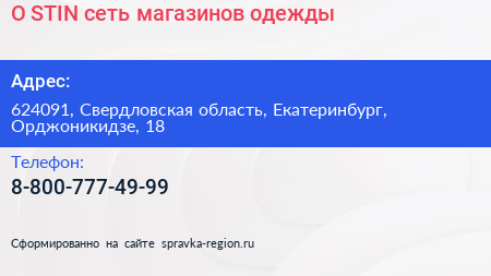 O`STIN, сеть магазинов одежды по адресу 624091, Свердловская область, Екатеринбург, Орджоникидзе, 18 в дальнейшем Организация, размещена в следующих категориях: