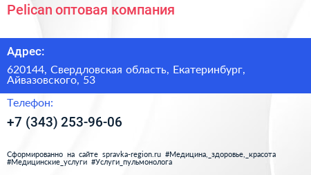 Pelican, оптовая компания по адресу 620144, Свердловская область, Екатеринбург, Айвазовского, 53 в дальнейшем Организация, размещена в следующих категориях: