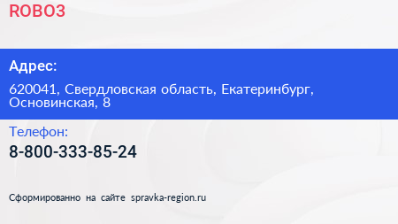 ROBO3 по адресу 620041, Свердловская область, Екатеринбург, Основинская, 8 в дальнейшем Организация, размещена в следующих категориях: