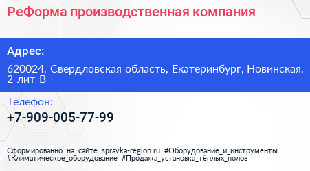 РеФорма, производственная компания по адресу 620024, Свердловская область, Екатеринбург, Новинская, 2 лит В в дальнейшем Организация, размещена в следующих категориях: