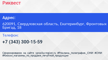 Риквест по адресу 620091, Свердловская область, Екатеринбург, Фронтовых Бригад, 18 в дальнейшем Организация, размещена в следующих категориях: