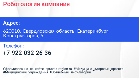 Роботология, компания по адресу 620010, Свердловская область, Екатеринбург, Конструкторов, 5 в дальнейшем Организация, размещена в следующих категориях: