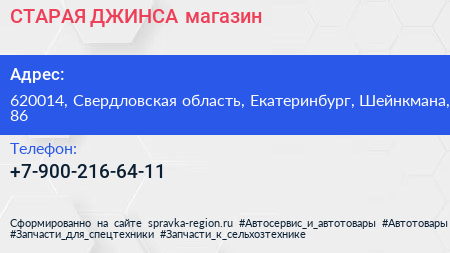 СТАРАЯ ДЖИНСА, магазин по адресу 620014, Свердловская область, Екатеринбург, Шейнкмана, 86 в дальнейшем Организация, размещена в следующих категориях: