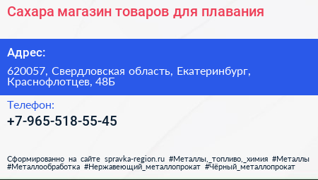 Сахара, магазин товаров для плавания по адресу 620057, Свердловская область, Екатеринбург, Краснофлотцев, 48Б в дальнейшем Организация, размещена в следующих категориях: