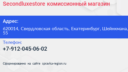 Secondluxestore, комиссионный магазин по адресу 620014, Свердловская область, Екатеринбург, Шейнкмана, 55 в дальнейшем Организация, размещена в следующих категориях: