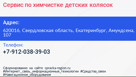 Сервис по химчистке детских колясок по адресу 620016, Свердловская область, Екатеринбург, Амундсена, 107 в дальнейшем Организация, размещена в следующих категориях: