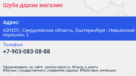 Шуба даром, магазин по адресу 620107, Свердловская область, Екатеринбург, Невьянский переулок, 1 в дальнейшем Организация, размещена в следующих категориях: