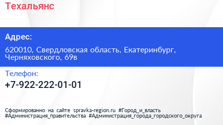 Техальянс по адресу 620010, Свердловская область, Екатеринбург, Черняховского, 69в в дальнейшем Организация, размещена в следующих категориях: