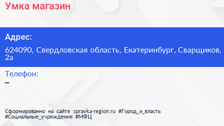 Умка, магазин по адресу 624090, Свердловская область, Екатеринбург, Сварщиков, 2а в дальнейшем Организация, размещена в следующих категориях:
