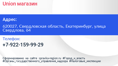 Union, магазин по адресу 620027, Свердловская область, Екатеринбург, улица Свердлова, 64 в дальнейшем Организация, размещена в следующих категориях:
