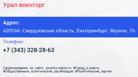 Урал, военторг по адресу 620144, Свердловская область, Екатеринбург, Фрунзе, 76 в дальнейшем Организация, размещена в следующих категориях: