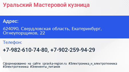 Уральский Мастеровой, кузница по адресу 624090, Свердловская область, Екатеринбург, Огнеупорщиков, 22 в дальнейшем Организация, размещена в следующих категориях: