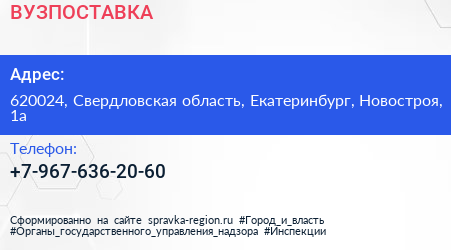 ВУЗПОСТАВКА по адресу 620024, Свердловская область, Екатеринбург, Новостроя, 1а в дальнейшем Организация, размещена в следующих категориях: